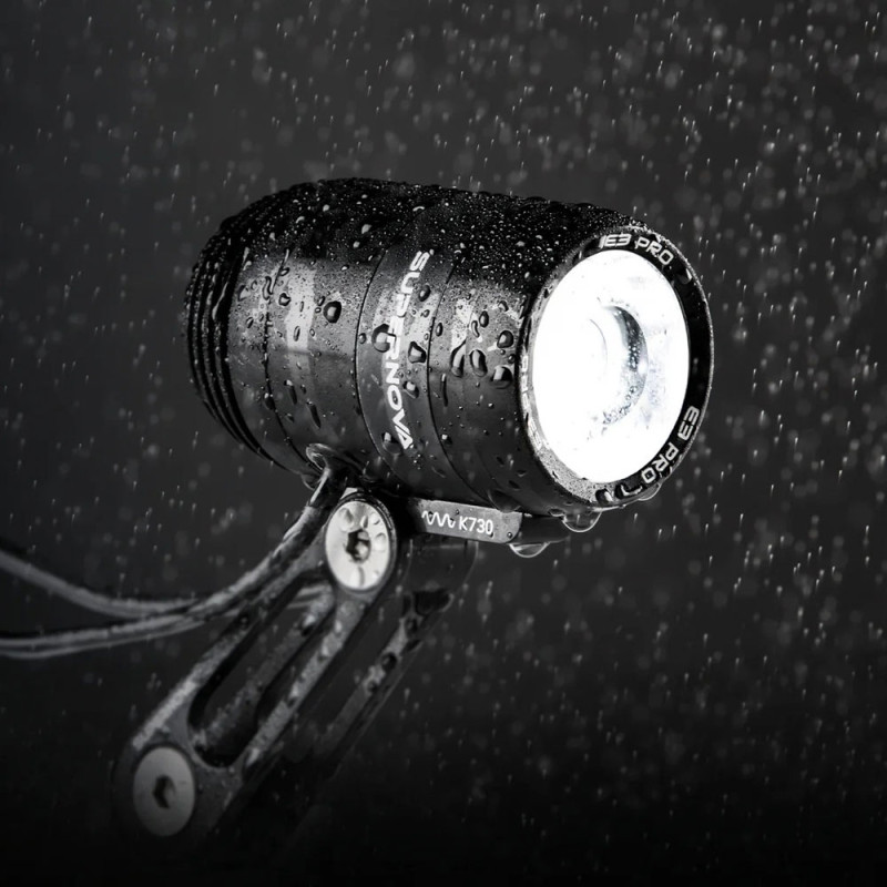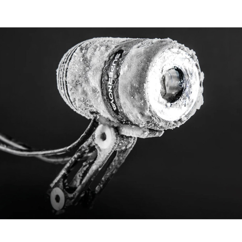 Dieses Supernova-Frontlicht ist eine dynamobetriebene Beleuchtung. Es sorgt auch bei niedrigen Geschwindigkeiten für einen hohen Lichtstrom. Es wird über einen Schalter an der Rückseite eingeschaltet. Es verfügt über zwei Modi: einen Abblendlichtmodus mit bis zu 205 Lumen und einen Tagfahrlichtmodus. Wie die anderen Produkte der Marke Supernova hebt sich auch dieses Licht durch seine hochwertigen Komponenten und seine Terraflux 3-Linse von der Konkurrenz ab, die für eine sehr helle und gleichmäßige Ausleuchtung sorgt und Sie viele Jahre lang unter allen Bedingungen begleiten wird.