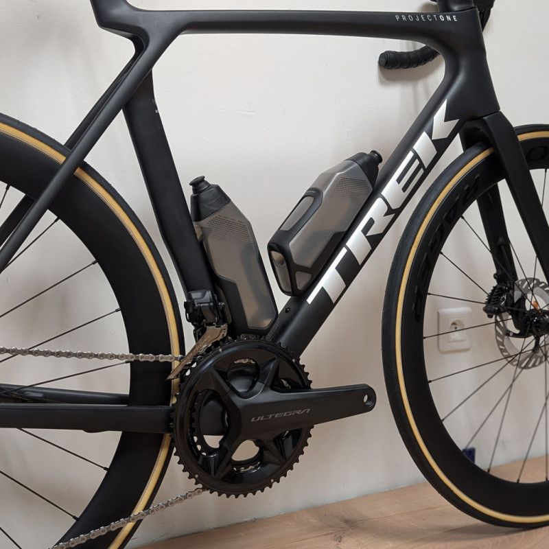 - Gabel: Madone Vollcarbon, konischer Drehpunkt, Flat-Mount-Scheibenbremsen, Steckachse 12x100 mm Antrieb: