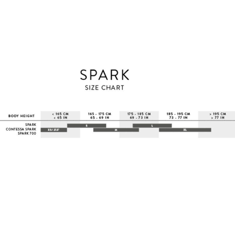Ce Spark se distingue également en étant à la pointe de la technologie avec une intégration innovante. En effet, l’amortisseur arrière a été intégré dans le cadre, les bénéfices associés sont multiples ; meilleure rigidité, aérodynamisme amélioré, fonctionnement de l’amortisseur optimisé et bien sûr une protection contre la boue et les autres débris. Les câbles et gaines ont aussi été intégrés pour un design sobre et épuré.