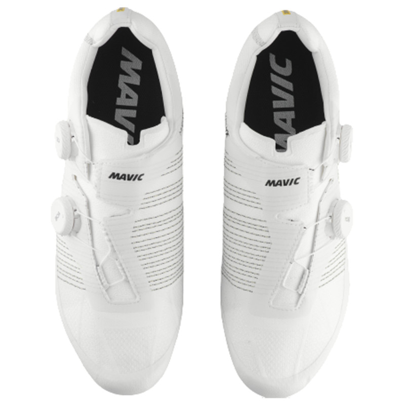 Die High-End-Schuhe von Mavic, die Cosmic Ultimate 4, bieten dank ihrer 100 % Carbon-Sohle eine hervorragende Kraftübertragung. Ihre optimale Belüftung und das BOA Fit-System garantieren eine präzise Passform und optimale Leichtigkeit für maximale Leistung.