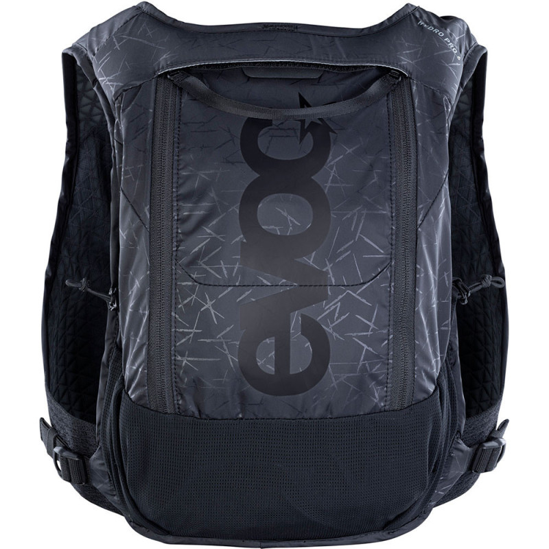 Wie beim Trailrunning ist auch dieser Rucksack Evoc Hydro Pro 6L minimalistisch und liegt eng am Körper an, sodass man ihn kaum spürt. Dank seiner sehr leichten Konstruktion können Sie Ihre Stauraumkapazität erhöhen, ohne sich zu sehr zu belasten. Durch seine flache Form lässt er sich sehr nah am Körper tragen, sodass er auch auf sehr holprigen Wegen perfekt an Ort und Stelle bleibt und gleichzeitig große Bewegungsfreiheit bietet. Die große Tasche bietet Platz für einen 1,5-Liter-Wasserbeutel und lässt noch Platz für Verpflegung und eine Regenjacke. An den Schultergurten befinden sich zwei große Reißverschlusstaschen, in denen Sie Ihre persönlichen Gegenstände wie Schlüssel oder Handy griffbereit aufbewahren können, sowie zwei Netztaschen für Verpflegung. Auf der Rückseite befindet sich ein luftdurchlässiges Netzgewebe, das Feuchtigkeit aufnimmt und schnell trocknet. Der Schlauch des Trinkbeutels wird mit einem Magnetclip an den Schultergurten vorne befestigt.