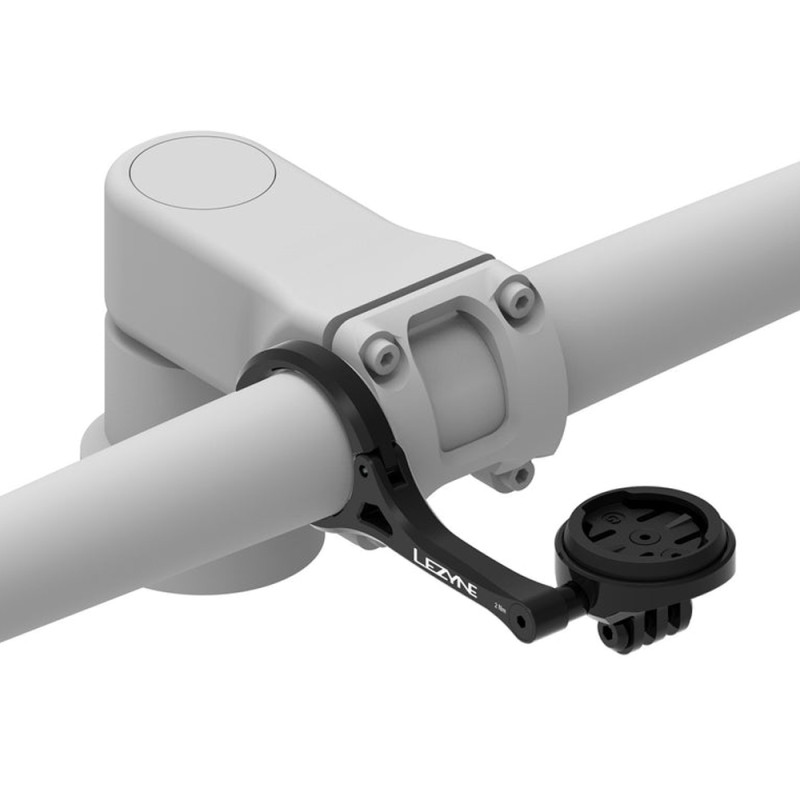 Dieser Tachohalter bietet eine Halterung für Garmin/Wahoo-GPS-Geräte und ist mit GoPro-Zubehör wie einer Lezyne-Frontbeleuchtung kompatibel. Er wird vor dem Vorbau befestigt und ermöglicht so eine ideale Platzierung Ihres Tachos.