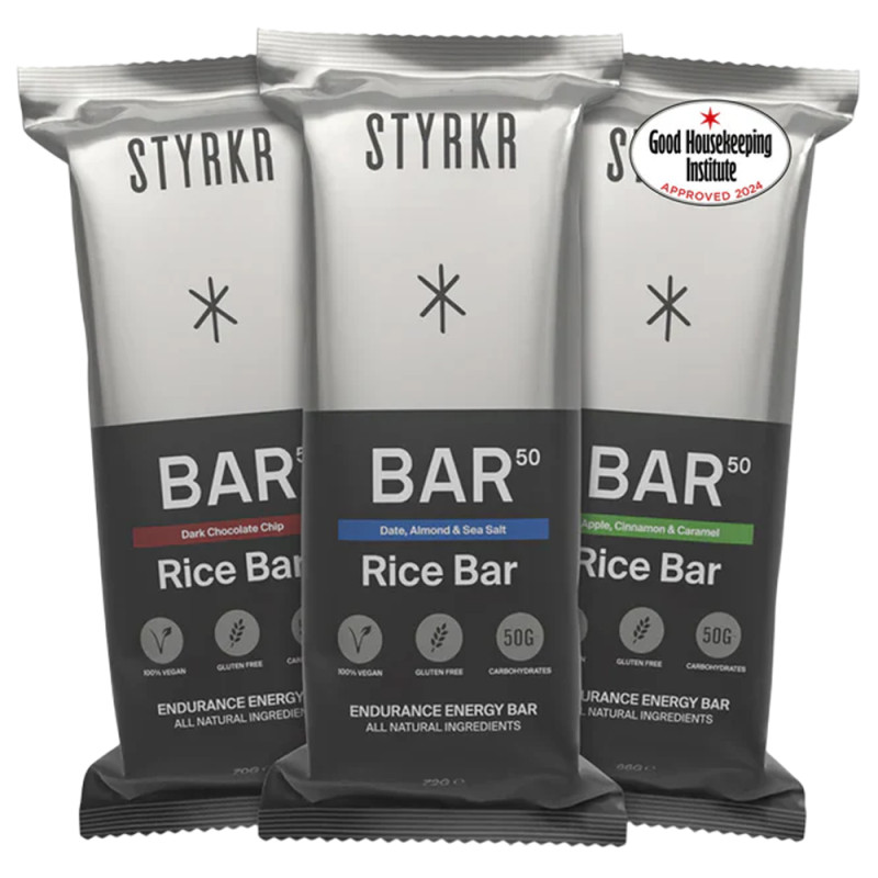 Mit der Box mit 12 Styrkr BAR50 Mixte Energieriegeln können Sie drei leckere, für Sportler geeignete Geschmacksrichtungen entdecken: Apfel-Zimt-Karamell, Zartbitterschokolade und Datteln-Mandeln-Fleur de Sel. Diese Riegel wurden speziell entwickelt, um dank ihrer 50 g Kohlenhydrate pro Riegel, d. h. 250 kcal pro Portion, einen schnellen Energieschub zu liefern. Sie sind leicht verdaulich und ideal vor oder während intensiver körperlicher Anstrengung, damit Sie leistungsfähig und voller Energie bleiben.