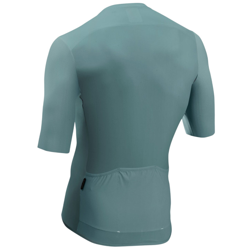Das kurzärmelige Trikot von Northwave ist aus 145 g Nilo-Gewebe gefertigt und bietet ein ultraweiches Tragegefühl und eine eng anliegende Passform ohne übermäßigen Druck. Der Rücken aus Dual White-Gewebe begrenzt die vertikale Dehnung und hält die Rückentaschen an ihrem Platz. Die grob geschnittenen Ärmel liegen an den Armen an, ohne die Bewegung einzuschränken, und der tief angesetzte Kragen sorgt für eine bequeme aerodynamische Position. Ausgestattet mit einem durchgehenden YKK-Reißverschluss, verfügt sie über drei Gesäßtaschen zum Verstauen.