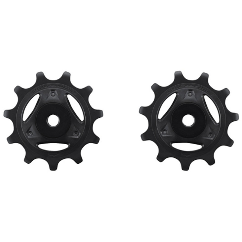 Die Rollen Y3GK98010 ergänzen das Schaltwerk Shimano Dura Ace 12v Di2. Verkauft im Paar, bestehend aus der oberen Rolle zur Führung der Kette und der unteren Rolle zur Gewährleistung der Spannung. Kompatibel mit großen Zahnrädern bis zu 34 Zähnen.
