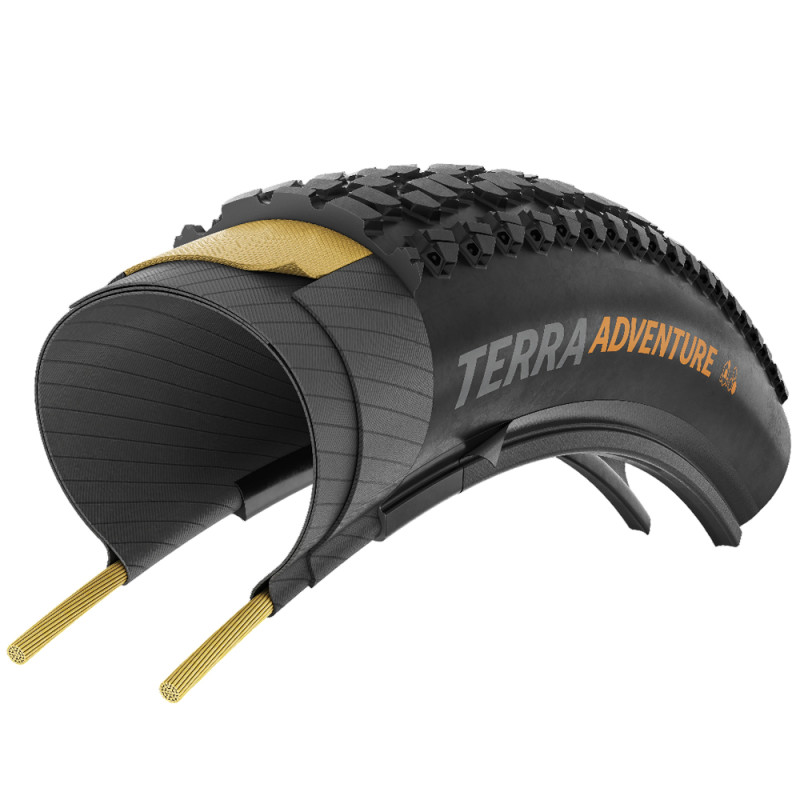 Wenn Ihr Gravel-Training an Mountainbiking grenzt, benötigen Sie einen hochwertigen All-Terrain-Reifen. Der Continental Terra Adventure Trail wird Ihren Erwartungen gerecht! Inspiriert von Cross-Country-Reifen bietet der Continental Terra Adventure eine hervorragende Leistung auf jedem Terrain, egal ob weicher oder harter Boden. Er verfügt über schräge Schulterstollen für besseren Grip in Kurven, während das 3-3-4-Stollenprofil in der Mitte für optimale Bremsleistung sorgt.