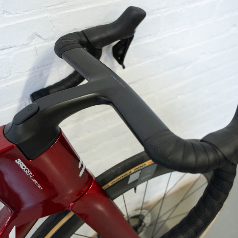 ¤Sein Ultra-HM-Carbonrahmen bietet eine gekonnte Mischung aus Steifigkeit und Leichtigkeit. Sein Luftwiderstand ist so gering wie möglich, insbesondere dank seiner modernen Geometrie. Mit einem steileren Sattelwinkel und einem tieferen Steuerrohr können Sie eine aggressivere Position einnehmen, um die Kraft besser auf die Pedale zu übertragen. Dieses Fahrrad zeichnet sich auch durch seine sehr breiten Rohre aus, insbesondere unterhalb des Lenkers, um einen möglichst guten Luftwiderstandsbeiwert zu erzielen. Als integraler Bestandteil des Entwicklungsprozesses des Rahmens ist das Nimbus Aero-Cockpit schmaler und weiter, um den neuen Anforderungen der Kurierfahrer gerecht zu werden.