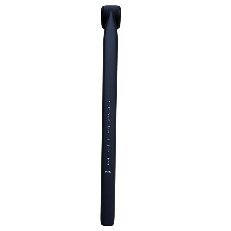 Bianchi bietet zwei Versionen der Sattelrückverstellung für sein Rennrad Specialissima (seit 2024) an. Diese Version der Sattelstütze zeichnet sich durch eine Rückverstellung von 0 mm aus, d. h. sie ist gerade in der Ausrichtung des Rahmens.