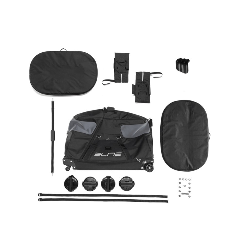 ¤Dank der Reißverschlüsse lässt sich der Elite-Koffer vollständig öffnen, um das Fahrrad und seine Schutzvorrichtungen leichter unterbringen zu können. Dank der Innenpolsterung ist das Fahrrad während des Transports gut vor Stößen geschützt.
