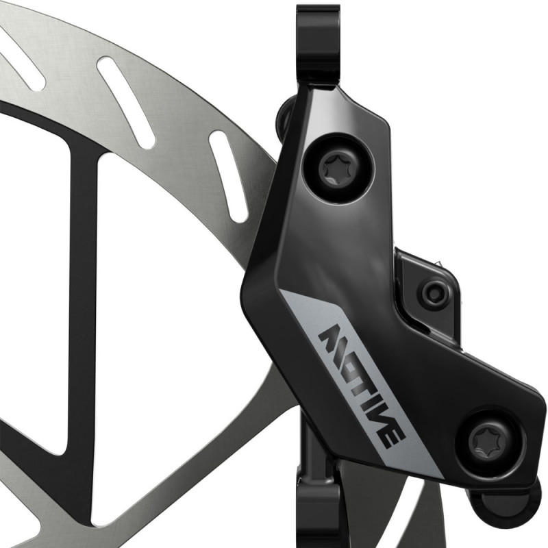 Lieferumfang: 1 Scheibenbremse Sram Motive Silver (Hebel + 4-Kolben-Bremssattel), 1 MMX-Klemmring, 2 Befestigungsschrauben, 1 Einsteckstift, 1 Olive, 1 Transportsicherung.