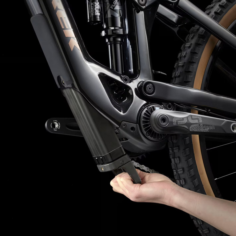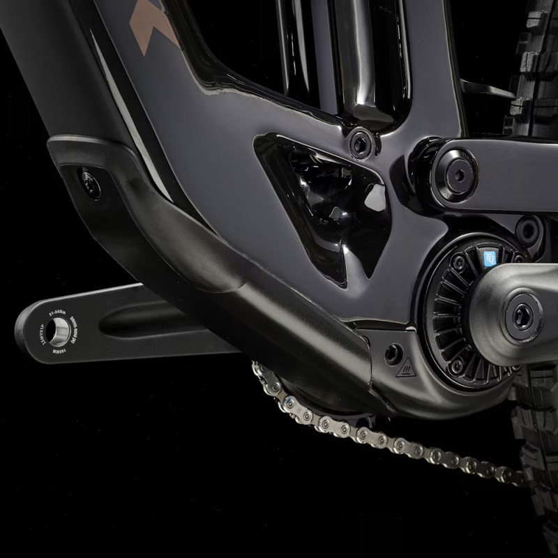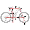 - Rahmen: OCLV Mountain Carbon, herausnehmbarer Akku, interne Kabelführung, Schwinge aus Aluminiumlegierung, 34,9-mm-Sattelrohr, obere Kettenführungsbefestigung, 55-mm-Kettenlinie, Mino Link, ABP, Boost148, UDH, 140 mm Federweg