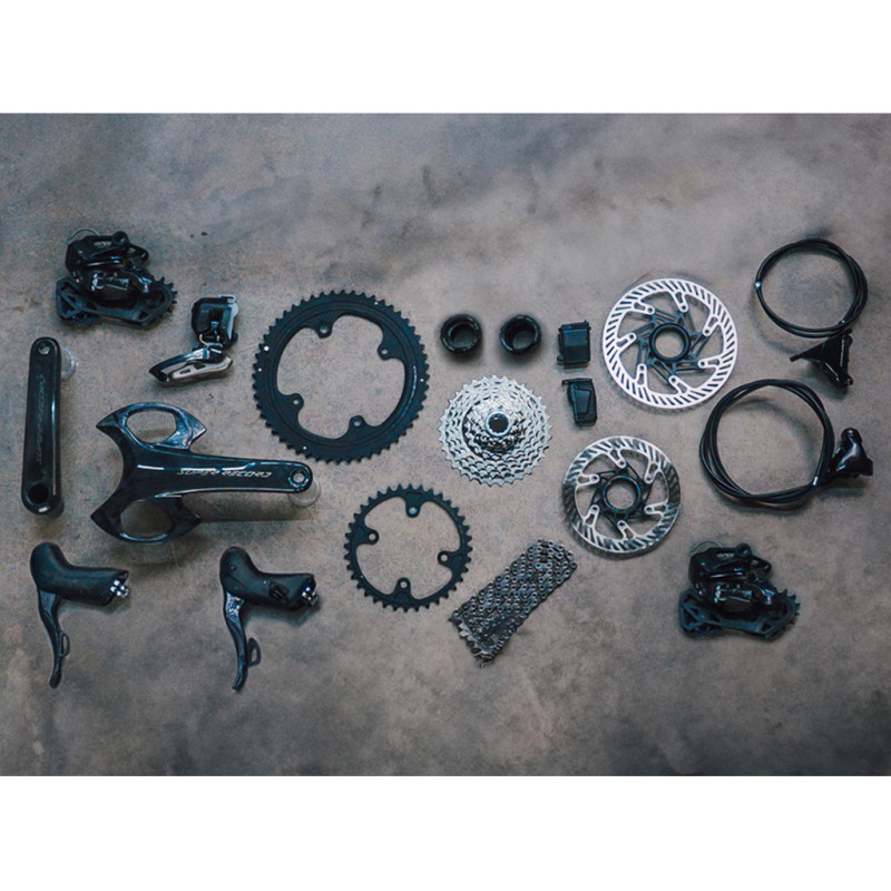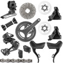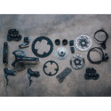 ¤- Inhalt der Gruppe: 2 Griffe, 2 Scheibenbremssättel, 1 Tretlager (Kettenblätter, Kurbeln), 1 Umwerfer, 1 Schaltwerk, 1 Kassette, 1 Kette, 2 Batterien für Schaltwerke, 1 Tretlagergehäuse, 2 Scheiben