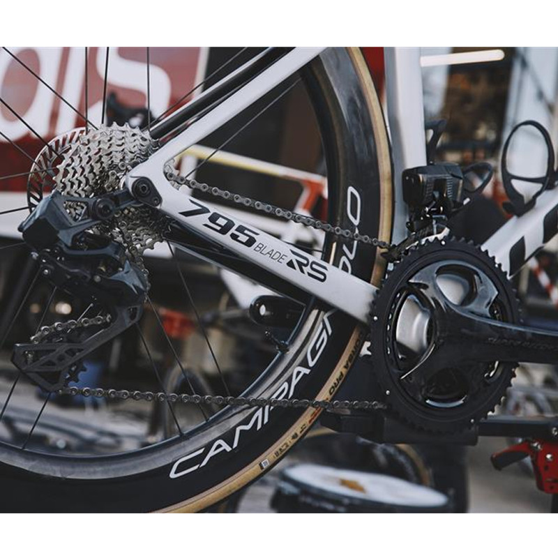 Diese Campagnolo Super Record 13v-Gruppe wurde in Zusammenarbeit mit Profi-Rennfahrern, wie denen des Teams Cofidis, entwickelt und vereint technologische Innovation, fortschrittliche Ergonomie und modernes Design.