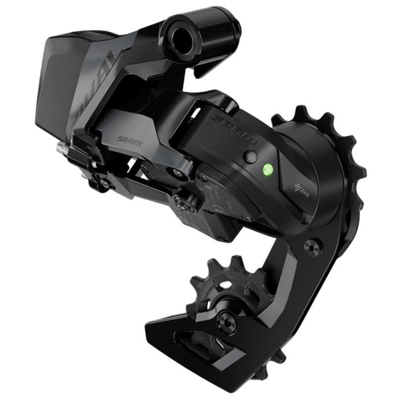 Dieses Schaltwerk ist das Herzstück des neuen Sram Rival AXS E1 12v-Antriebs. Es garantiert schnelle und präzise Gangwechsel.