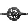 Die Sram Rival AXS E1 12v-Kurbelgarnitur bietet ein ausgezeichnetes Verhältnis zwischen Gewicht und Steifigkeit, mit Kettenblättern, die präzise Gangwechsel gewährleisten, und leistungsstarken Aluminiumkurbeln.