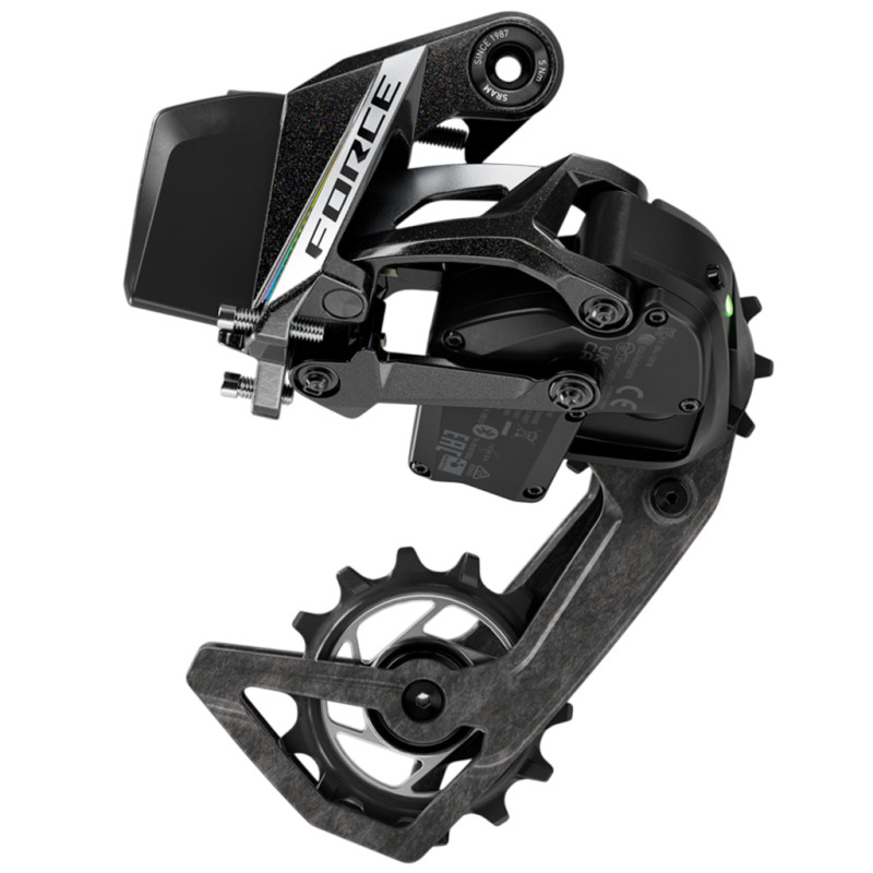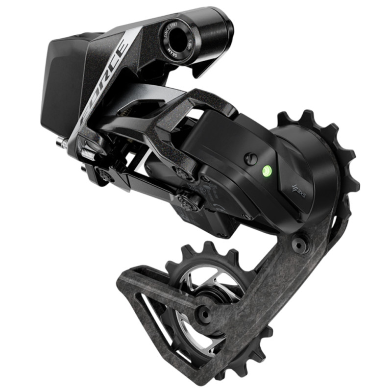 Dieses Schaltwerk ist mit Einfach- oder Doppelkettenblatt-Antrieben und Kassetten von 10-28 bis 10-36 Zähnen kompatibel und ein wahres technologisches Juwel. Mit verbreiterten X-SYNC-Rollen und einer neuen, leichteren Schaltrunge wurde es entwickelt, um die Leistung des Antriebs zu verbessern. Das Force AXS-Schaltwerk ist 12 Gramm leichter als die Vorgängergeneration und somit für alle Herausforderungen gerüstet.