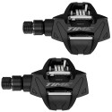Das ATAC XC wurde entwickelt, um den Anforderungen des modernen Cross-Country gerecht zu werden, indem es Leichtigkeit, Zuverlässigkeit und mechanische Einfachheit vereint. Sein verstärkter Verbundkörper sorgt für hervorragende Festigkeit bei gleichzeitig geringem Gewicht. Die Stahlachse sorgt für erhöhte Haltbarkeit, selbst unter intensiven Bedingungen. Der ATAC-Mechanismus (Auto Tension Adjustment Concept) ermöglicht ein schnelles und präzises Einrasten in jeder Situation.