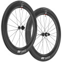 Mit der dritten Generation seiner ARC-Laufräder ist DT Swiss stärker denn je zurück und setzt weiterhin neue Maßstäbe in Sachen Innovation. Die DT Swiss ARC 1100 Dicut 65 gelten als die schnellsten Rennlaufräder auf flachen und leicht hügeligen Strecken und schneiden mit voller Geschwindigkeit durch die Luft. Dieses Paar hat eine Innenbreite von 22 mm und ist somit für breite Reifen (28-30 mm) geeignet, die für mehr Komfort und Grip sorgen. Diese große Innenbreite beeinträchtigt jedoch nicht die Aerodynamik, da die V-förmigen Carbonfelgen eine reduzierte Frontfläche gewährleisten, um den Luftwiderstand zu verringern. Die DT Aerolite II-Speichen bieten einen geringen Dreh- und Translationswiderstand für eine bessere Luftdurchdringung.