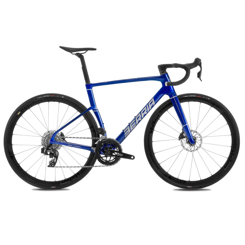 Mit dem Belador Pro Iris Blue 2026 bietet Berria ein Rennrad mit einem außergewöhnlichen Preis-Leistungs-Verhältnis, das für anspruchsvolle Radfahrer entwickelt wurde. Dieses Modell übernimmt die Linienführung des Belador BR und zeichnet sich durch einen leichten Rahmen, eine weitgehende Integration und einen elektronischen Antrieb der neuesten Generation aus. Der HM2X-Carbonrahmen ist sowohl steif als auch reaktionsfreudig und wiegt nur 970 g. In Kombination mit der 450 g leichten Belador Blade 6-Carbongabel bildet er eine stabile und agile Basis, die sich perfekt dafür eignet, Kilometer mit Stil und Effizienz zurückzulegen. Seine Racing BGC ASE-Geometrie (Aero Shape Efficiency) maximiert die aerodynamische Leistung. Der drahtlose elektronische 12-Gang-Antrieb SRAM Rival eTap AXS mit integriertem Leistungsmesser (PWM) garantiert sofortige Gangwechsel und eine präzise Anzeige Ihrer Trainingsdaten. Die hydraulischen Bremsen bieten optimale Kontrolle, selbst unter anspruchsvollsten Bedingungen.