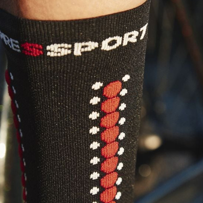 Die Compressport Pro Racing Socks V4.0 Bike wurden speziell für die Anforderungen des intensiven Radsports entwickelt. Ihre technische Struktur bietet optimalen Halt und fördert gleichzeitig die Durchblutung, um die Muskelermüdung zu verzögern. Dank gezielter Kompressionszonen reduzieren sie Vibrationen und verbessern die Stabilität des Fußes im Schuh. Die ultraleichten und atmungsaktiven Fasern sorgen für eine hervorragende Wärmeregulierung und leiten Feuchtigkeit effizient ab.