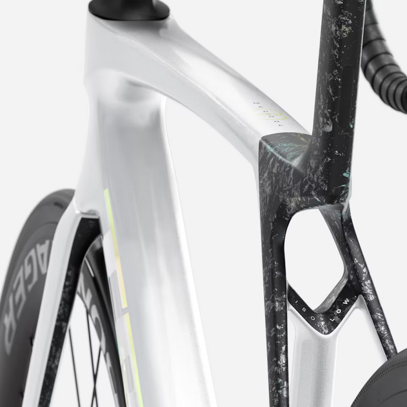 - Rahmen: OCLV Carbon der Serie 500, Full System Foil, IsoFlow, RCS-Steuerkopf, UDH, interne Kabelführung, 12×142-mm-Steckachse, T47-Tretlager
