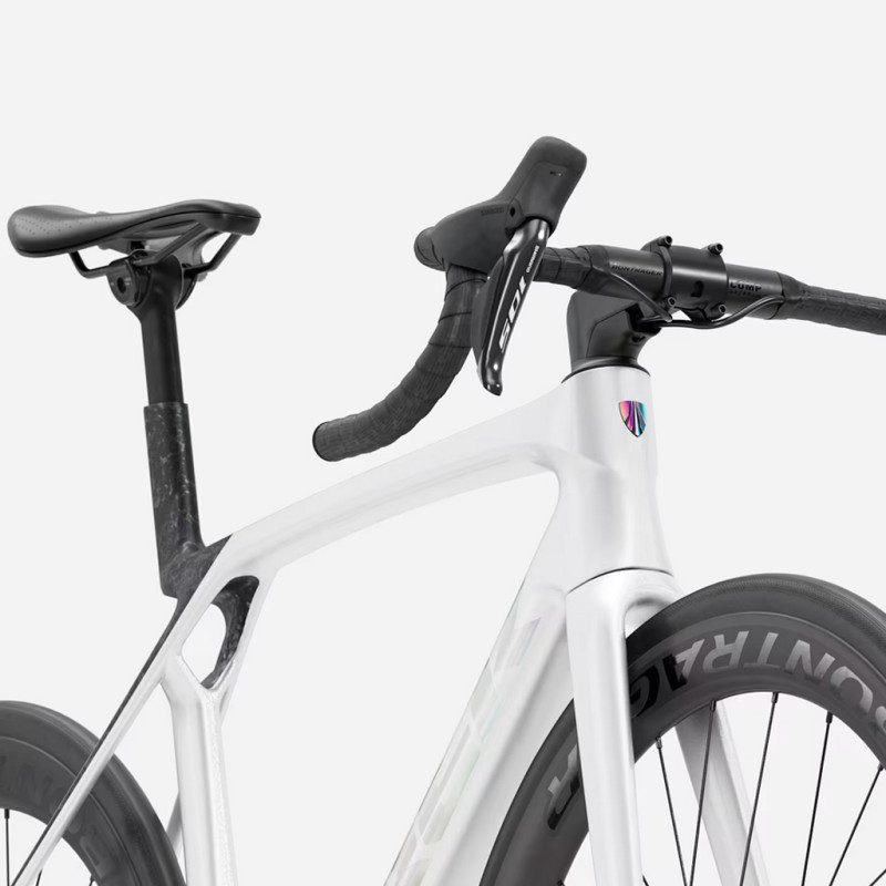 Das Madone SL 6 Gen 8 setzt neue Maßstäbe, indem es Aerodynamik und Komfort auf langen Strecken vereint. Sein OCLV Carbon-Rahmen der Serie 500 mit Full System Foil-Rohren optimiert den Luftwiderstand, während die IsoFlow-Technologie der Sattelstütze Vibrationen absorbiert und so für mehr Komfort sorgt. Die interne Kabelführung veredelt die Linienführung des Fahrrads und reduziert den Luftwiderstand, um noch schneller zu fahren. Dieses Modell ist mit der Shimano 105 Di2 12-Gang-Gruppe ausgestattet, die für ihre Reaktionsfähigkeit und Zuverlässigkeit bekannt ist. Die kompakte 50/34-Kurbelgarnitur in Kombination mit einer 11-34-Kassette sorgt für eine hohe Anpassungsfähigkeit sowohl an Steigungen als auch in der Ebene.