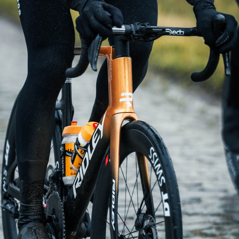 Die belgische Marke, die seit Jahren auf höchstem Niveau im Radsport vertreten ist, bleibt mit dem Team Uno-X Mobility im Zentrum des Profi-Pelotons. Angeführt von Fahrern wie Soren Wærenskjold, Jonas Abrahamsen, Magnus Cort oder Alexander Kristoff fährt das norwegische Team auf diesem Ridley Noah Fast 3.0, das bei einer Geschwindigkeit von 50 km/h 8,5 Watt schneller sein soll als sein Vorgänger. Dieses Aero-Bike, das von den Fahrern des norwegischen Teams auf den flachen Etappen der Tour de France oder bei Eintagesklassikern eingesetzt wird, hat viele Vorzüge.