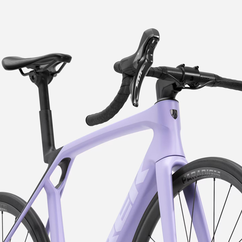 ¤Ausgestattet mit der mechanischen Shimano 105 12-Gang-Gruppe bietet es präzise und zuverlässige Schaltvorgänge, während die hydraulischen Scheibenbremsen unter allen Bedingungen optimale Kontrolle gewährleisten. Die Bontrager Paradigm 23 Tubeless Ready-Laufräder und die schnellen Bontrager R3 Hard-Case Lite-Reifen runden das Paket ab und bieten bemerkenswerte Leistung und Grip. Mit seiner eleganten und modernen Farbgebung in Matte Lavender Haze/Deep Smoke überzeugt das Madone SL 5 sowohl durch seine Leistung als auch durch seinen Stil. Es ist die ideale Wahl für alle, die ein hochwertiges Rennrad zu einem wettbewerbsfähigen Preis suchen, das sowohl für intensives Training als auch für Wettkämpfe geeignet ist.