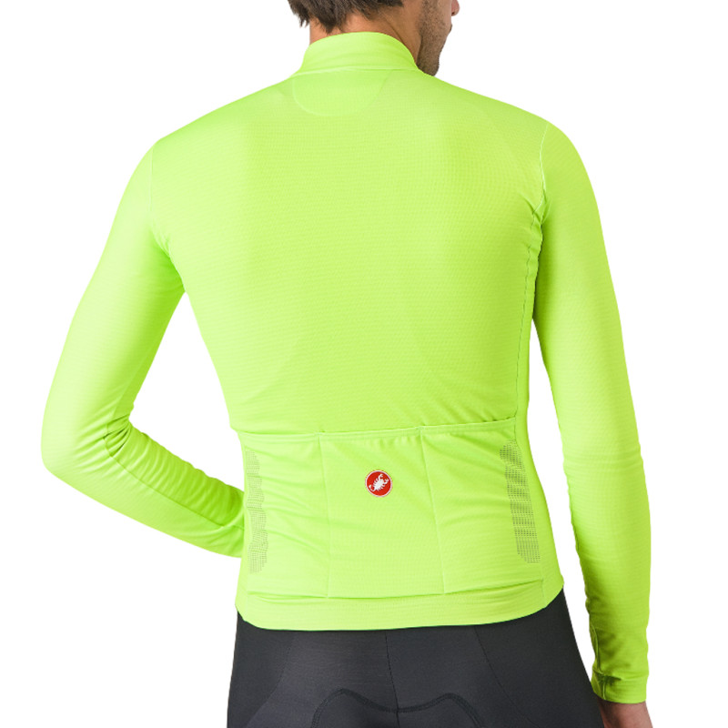 Perfekt für Fahrten in der Übergangszeit bei Temperaturen um die 15 Grad: Dieses Castelli Puro 4 Jersey garantiert Ihnen genau die richtige Wärme. Mit seiner körpernahen Passform, die dennoch nicht zu eng sitzt, ist dieses Trikot dehnbar. Der in Italien hergestellte Stoff ist etwas Besonderes: Er verfügt über eine Art geripptes Fleece auf der Innenseite, das Ihren Körper warm hält. Das Polyestergarn sorgt für einen guten Feuchtigkeitstransport, damit Sie stets ein kühles Tragegefühl genießen. Mit seinem schlichten Design und durchdachten reflektierenden Elementen ist dieses Castelli Puro 4 Jersey hochwertig verarbeitet und verfügt über einen YKK-Vislon-Reißverschluss, drei Rückentaschen sowie einen elastischen Bund für sicheren Halt bei Belastung. Technische Daten: - Farben: Dark Grey, Electric Lime