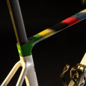 ¤Mit den Erfahrungen aus den Studien für das Y1Rs hat Colnago das Design des V5Rs mit schlanken, leistungsstarken Profilen verfeinert. Der Rahmen hat eine reduzierte Frontfläche mit einem schlankeren Steuerrohr und einem dünneren Sattelrohr, um den Luftwiderstand zu verringern und Watt zu sparen. Das Colnago V5Rs VRWC World Champion macht jedoch keine Kompromisse bei Steifigkeit und Reaktionsfähigkeit, um den Anforderungen von Profi-Fahrern wie Tadej Pogacar gerecht zu werden. Neben dem neuen Profil der Gabel bietet dieses Fahrrad auch eine modernere Geometrie für eine aggressivere Fahrposition. Dieses Fahrrad verwendet auch den BSA-Tretlagerstandard, eine Wahl, die durch die Steifigkeit des Rahmens diktiert wird und ein weniger überdimensioniertes und damit leichteres Tretlager ermöglicht.