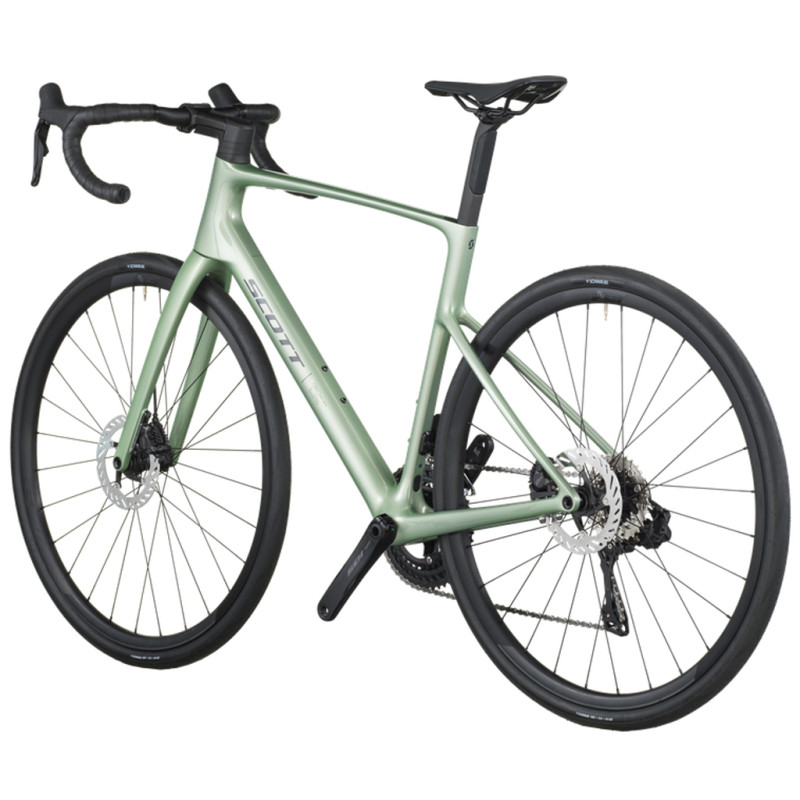 Das Scott Addict 40 vereint Leistung und Komfort in einem Rennrad, das für alle Ihre Touren ausgelegt ist. Dank seines leichten und robusten HMF-Carbonrahmens bietet es eine perfekte Balance zwischen Leistung auf der Straße und vertikaler Nachgiebigkeit (+25 % im Vergleich zu reinen Rennradmodellen), um Unebenheiten abzufedern und ein flüssigeres Fahrgefühl zu bieten. Seine offenere Geometrie mit größerem Stack und kürzerem Reach sorgt für eine entspanntere und bequemere Sitzposition, ideal für lange Tage im Sattel. Mit einer Reifenaufnahme von bis zu 38 mm ist das Addict 40 auf schnellen Straßen ebenso zu Hause wie auf anspruchsvolleren Wegen, ohne Kompromisse bei der Geschwindigkeit einzugehen. Reaktionsfreudig im Anstieg, stabil in der Abfahrt, eignet es sich sowohl für sportliche Touren als auch für entspannte Ausflüge. Ausgestattet mit der elektronischen Shimano 105 Di2-Gruppe mit 2x12 Gängen garantiert es schnelle und präzise Gangwechsel sowie eine kraftvolle und konstante hydraulische Bremsleistung. Seine Syncros RP2.0-Laufräder und Schwalbe One-Reifen (34 mm) sorgen für Sicherheit, Komfort und Effizienz. Mit einem Gewicht von 8,9 kg ist das Scott Addict 40 ein vielseitiges und zuverlässiges Fahrrad, das für anspruchsvolle Radfahrer entwickelt wurde, die ein Fahrrad suchen, das alles kann. Technische Daten: Rahmen: