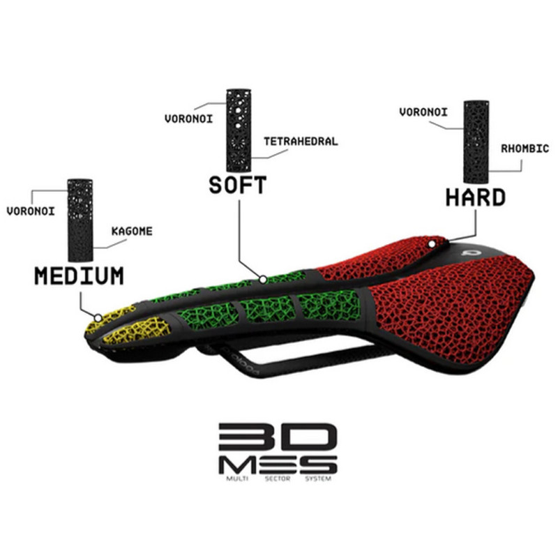 Der Sattel Prologo Nago R4 Pas 3DMSS, der von mehreren Stars des Profi-Radsports wie Tadej Pogacar verwendet wird, steckt voller moderner Technologien. Mithilfe der MyOwn Pressure Map-Tests hat die italienische Marke die verschiedenen Druckzonen, die bei Belastung durch Radfahrer auf einen Sattel ausgeübt werden, wissenschaftlich analysiert. Daraus resultiert eine Konstruktion mit fünf Zonen und unterschiedlichen Dichten.Der hintere Teil verfügt über eine hohe Dichte und einen hohen Elastizitätskoeffizienten, um die Sitzknochen besser zu stützen und die Zugphase zu erleichtern. Der mittlere Bereich garantiert durch eine geringe Dichte und einen mittleren Elastizitätskoeffizienten größtmöglichen Komfort. Im vorderen Bereich schließlich sorgen eine mittlere Dichte und ein geringer Elastizitätskoeffizient für hervorragenden Halt beim Treten am vorderen Ende des Sattels. Durch die Kombination der Multi Sector System-Technologie mit einem innovativen 3D-Druckverfahren sorgt der Bezug dieses neuen Prologo Nago R4 Pas 3DMSS dafür, dass Sie in allen Phasen des Pedalierens bessere Leistungen erzielen, da er sich optimal an die Körperform jedes Radfahrers anpasst. Dieser Sattel ist mit 195 Gramm besonders leicht. Mit seiner ergonomischen T-Form und den kompakten Abmessungen (245 x 137 mm) verfügt der Prologo Nago R4 Pas 3DMSS zudem über eine Carbon-Schale und eine robuste TiroX-Schiene. Technische Daten: - Farbe: Schwarz 3D