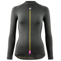 Das Assos Spring Fall LS Skin Layer P1 ist die ideale erste Schicht für Ausfahrten bei kühlem Wetter, bei Temperaturen um die 5–10 Grad. Dieses langärmelige Unterhemd wurde wie eine zweite Haut konzipiert und umhüllt den Oberkörper und die Arme vollständig, um eine optimale Wärmeregulierung zu gewährleisten. Es ist leichter als die Vorgängergeneration und verfügt über eine intelligente Isolationsgradierung. Mit einem dichteren, isolierenden Material an der Vorderseite und am Kragen zum Schutz vor Kälte sowie einer offeneren Struktur am Rücken und unter den Achseln, um Wärme und Feuchtigkeit schnell abzuleiten. Die nahtlose Konstruktion aus einem Stück verhindert jegliche Reibung, während die integrierte Carbonfaser dank der odorControl-Technologie für eine dauerhafte Geruchskontrolle sorgt. Dieses Unterhemd wurde komplett für die weibliche Anatomie neu entwickelt und garantiert eine perfekte Passform sowie lang anhaltenden Komfort. Am Rücken und unter den Armen ist das Gewebe offener, um die Atmungsaktivität zu erhöhen und überschüssige Körperwärme bei intensiver Anstrengung abzuleiten. Dieses Assos Spring Fall LS Skin Layer P1 besteht aus Polypropylen, Polyamid, Elasthan und Carbonfaser und fühlt sich auf der Haut ultraweich an. Technische Merkmale: - Farbe: Anthracite Grey