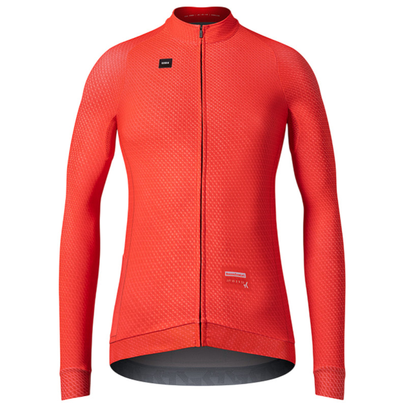 Mit seiner orange-roten Farbgebung ist dieses Gobik Hyder Vermilon bereit, mit Ihnen auf die winterlichen Straßen zu gehen. Hergestellt aus einem dehnbaren Funktionsmaterial, passt sich dieses Langarmtrikot den Konturen Ihres Körpers an und sorgt so für einen besseren Luftwiderstandsbeiwert und mehr Komfort. Sein warmes Futter aus Microfleece hält die Körperwärme im Inneren und lässt die Kälte draußen.Die Ärmel bestehen aus einem leichten und geschmeidigen Material. Die Ärmelbündchen sind lasergeschnitten, um eine optimale Passform zu gewährleisten. Die Mesh-Einsätze unter den Armen sorgen für eine hervorragende Belüftung und leiten Schweiß optimal ab. Dank des Silikonbunds an der Taille bleibt dieses Gobik Hyder Vermilon auch bei Anstrengung sicher an Ort und Stelle. Schließlich ist dieses lange Trikot mit seinen 4 Rückentaschen und den reflektierenden Details auch sehr praktisch. Technische Merkmale: - Farbe: Vermilon