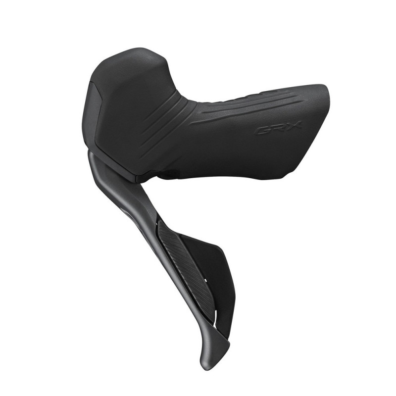 Der linke Griff des Shimano GRX Di2 DUAL Control 12-Gang-Systems bietet schnelle und flüssige Kettenblattwechsel für Gravel- und Mixed-Terrain-Fahrer.