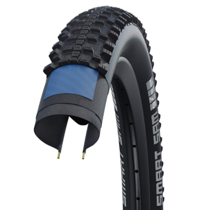 Der Schwalbe Smart Sam Performance 27,5x2,80 ist der ideale All-Terrain-Reifen für Mountainbiker, die auf der Suche nach einem vielseitigen, zuverlässigen und langlebigen Modell sind. Er wurde entwickelt, um auf Trails zu glänzen, und eignet sich perfekt für Touren, Trail-Fahrten oder Freizeit-Mountainbiking. Sein modernes Profil mit eng beieinanderliegenden Mittelstollen sorgt für hervorragende Laufruhe und optimale Leistung auf Asphalt, während Vibrationen minimiert werden. Auf technisch anspruchsvollerem Gelände garantieren die massiven Seitenstollen vorbildlichen Grip und Stabilität, selbst in Kurven. Seine Performance-Line-Konstruktion bietet eine sehr gute Balance zwischen Widerstandsfähigkeit, Komfort und Langlebigkeit, während seine großzügige Breite von 2,80 Zoll die Traktion und Dämpfung verbessert. Der Smart Sam bleibt eine unverzichtbare Wahl für alle, die einen Reifen suchen, der alles kann, ohne Kompromisse. Technische Daten: - Einsatzbereich: Vielseitiges Mountainbike und E-Mountainbike