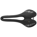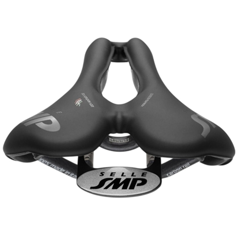 Dieser in Italien handgefertigte Sattel ist mit Schienen aus unidirektionalem Carbon ausgestattet. Er vereint Leichtigkeit und optimale Vibrationsdämpfung für dauerhaften Komfort und außergewöhnliche Leistung. Der SMP VT20 ist ideal für Männer und Frauen und wurde mit der innovativen SMP VACUUM TECH-Technologie entwickelt, bei der die Polsterung ohne Klebstoff oder mechanische Haken angebracht wird, was eine längere Lebensdauer garantiert. Die Polsterung aus weichem Polyurethan mit hoher mechanischer Festigkeit sorgt für hervorragenden Komfort. Sein breiter Mittelkanal und die zentral angeordnete Sattelnase entlasten empfindliche Bereiche und fördern eine natürliche Haltung sowie eine optimale Durchblutung. Der SMP VT20 eignet sich perfekt für lange und intensive Touren, da er Stöße absorbiert und gleichzeitig bemerkenswerte Stabilität bietet. Mit seinen Befestigungselementen wird dieser Sattel alle Arten von Radfahrern begeistern. Technische Daten: - Farbe: Schwarz