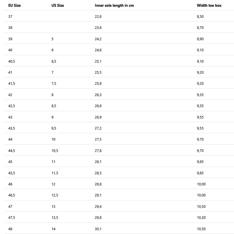 Wenn Sie Füße mit Standardbreite und -volumen haben, empfehlen wir Ihnen die Schuhgröße, die am besten zu Ihrem Maß passt. Beispiel: Fußlänge: 27,3 cm = Schuhgröße 44 / Fußlänge: 25,8 cm = Schuhgröße 41,5. Wenn Ihre Füße unterschiedlich lang sind: Wählen Sie die Schuhgröße, die Ihrem längeren Fuß entspricht.
