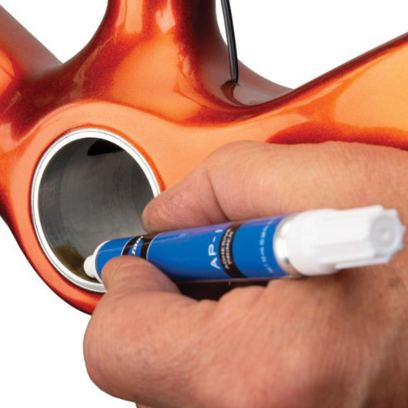 Der Park Tool AP-1 Grundierungsstift ist ein unverzichtbares Hilfsmittel, um die Leistungsfähigkeit und Sicherheit Ihrer mechanischen Verbindungen zu gewährleisten. Er wurde entwickelt, um Oberflächen vor dem Auftragen von Schraubensicherungen oder Haftmitteln vorzubereiten, verbessert die Haftung, beschleunigt die Aushärtung und optimiert die Leistung der Park Tool-Produkte TLR-1, TLR-2 und RC-1. Diese Hochleistungsgrundierung wird besonders für Komponenten aus Carbonfaser empfohlen, wie beispielsweise PF30-Tretlagergehäuse oder Pressfit-Lager, um eine dauerhafte Verklebung und strukturelle Schäden zu vermeiden. Der Park Tool AP-1 lässt sich dank seines praktischen Stiftformats leicht anwenden und ermöglicht einen präzisen und sauberen Auftrag ohne Verschwendung. Achtung: Bestimmte lackierte Oberflächen können empfindlich auf Klebstoffe reagieren. Führen Sie vor der Anwendung einen Test an einer unauffälligen Stelle durch. Technische Daten: - Verwendung: Oberflächenvorbereitung vor dem Auftragen von Schraubensicherungsmittel oder Press-Fit-Verbindungen