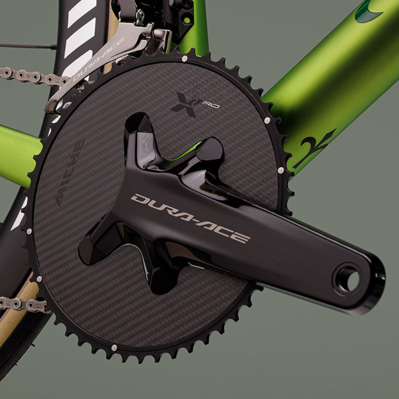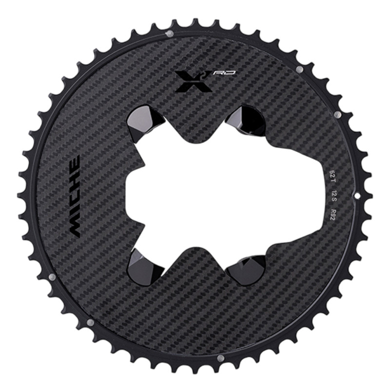 Das externe Kettenblatt Miche X2 RD 92 ist mit den Shimano Dura Ace R9200-Kurbeln mit Leistungsmesser kompatibel und zeichnet sich durch sein geringes Gewicht und seine Steifigkeit aus.