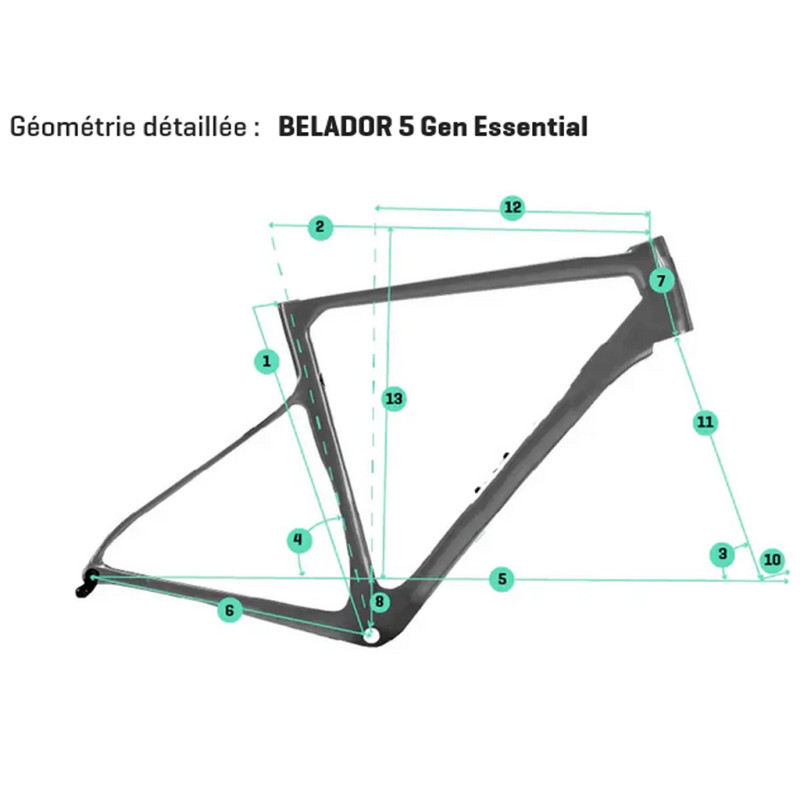 - Rahmen: Belador 5, Racing Geometry BGC Aero Shape Efficiency (ASE), Vollcarbon HM2X, dreiteiliger Monocoque-Rahmen