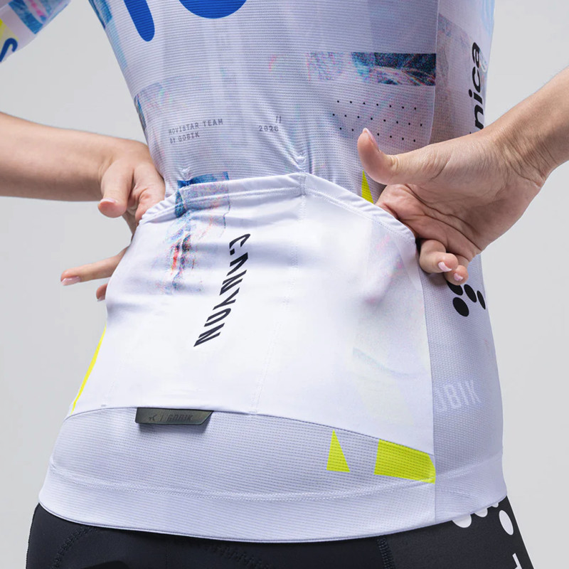 Sind Sie Fan von Cian Uijtdebroeks, Enric Mas oder Nairo Quintana, den Spitzenfahrern des Movistar-Teams? Dann ist dieses Gobik Odyssey Unisex Movistar Team 2026 Trikot genau das Richtige für Sie! Dieses Trikot ist ideal für Fahrten bei hohen Temperaturen und begleitet Sie optimal bei Ihren intensiven Sommertrainings oder bei einer langen Radtour in den Bergen. Als perfekte Balance zwischen technischer Leistung und Komfort ist dieses Trikot aus atmungsaktiven, schnell trocknenden Materialien gefertigt, um Ihren Körper trocken und kühl zu halten. Die Ärmel verfügen über einen nahtlosen Laserschnitt für eine bessere Windableitung, um Reibung zu vermeiden und so mehr Aerodynamik und Komfort zu bieten. Der Kragen wurde verlängert, um eine bessere Passform zu erzielen. Dieses Gobik Odyssey Unisex Movistar Team 2026 präsentiert sich so modern wie möglich, mit seinen 3 schräg geschnittenen Taschen, dem minimalistischen Silikonband an der Taille und dem reflektierenden Detail auf der Rückseite für bessere Sichtbarkeit. Technische Merkmale: - Farbe: Movistar Team 2026