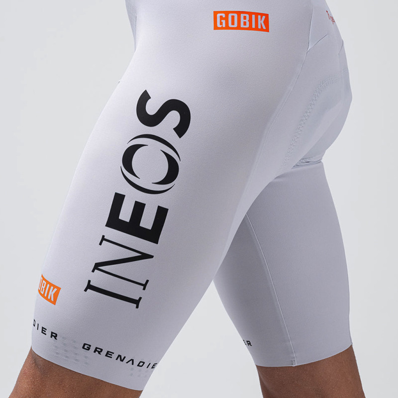 Sie haben sich in das neue Trikot des Ineos-Teams verliebt? Dann brauchen Sie jetzt die passende Radhose, um die echte Klasse eines Profi-Rennfahrers zu zeigen. Diese Radhose wird von den Spitzenfahrern des englischen Teams wie Egan Bernal, Filippo Ganna, Dorian Godon, Carlos Rodríguez oder Kévin Vauquelin getragen und ist ein leistungsstarkes Modell, das speziell für den Rennsport entwickelt wurde. Sie kombiniert fortschrittliche Technologien und hochwertige Materialien, um optimalen Komfort und außergewöhnliche Leistung zu gewährleisten. Hergestellt aus Lycra und Elasthan, garantiert sie hohe Dehnbarkeit und sorgt gleichzeitig durch ihr 4-Way-Stretch-Material für eine starke Muskelkompression. Durch den Einsatz von Bonding-Verfahren werden möglichst viele Nähte vermieden, was die Reibung minimiert und den Komfort erhöht. Sein anatomischer Schnitt ist speziell darauf ausgelegt, den Bewegungen des Radfahrers zu folgen und Reibung durch eine optimale Passform zu reduzieren. Der Bund ist mit einem weichen Gummiband ausgestattet, um Halt ohne Kompression zu bieten. Die ergonomischen Träger sind breiter und lasergeschnitten sowie an den Enden thermisch verschweißt. Diese aus Graphen-Garn gefertigten Träger fördern die Wärmeregulierung und bieten antibakterielle sowie geruchsneutralisierende Eigenschaften. Auf der Rückseite sorgt ein thermisch aufgebrachtes Gitter für verbesserte Belüftung und verfügt über eine Tasche für den Sender.Dieser Gobik Lancer Blend K10 Ineos Grenadiers 2026 ist dank seines K10-Einsatzes, der aus Schaumstoffen unterschiedlicher Dichte, einem zentralen Kanal und einem Gewebe aus Graphen besteht, sehr bequem. Seine anatomische, multidirektionale Wölbung macht dieses Sitzpolster sehr weich und sorgt für perfekten Halt. Die Beinlänge ist verlängert (+2 cm), um den Blutrückfluss zu verbessern. Die Beinenden sind lasergeschnitten, während der organische 3D-Grip einen hervorragenden Halt bei Belastung garantiert. Technische Daten: - Farbe: Ineos Grenadiers 2026