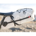 - Ausstattung: Kompressionsventil, elastische Gurte, reflektierende Streifen, Befestigung für Rücklicht Kompatibilitätsleitfaden: Erfordert einen vertikalen Mindestabstand von 23 cm zwischen der Unterseite der Sattelstreben und dem Hinterreifen (gemessen am komprimierten Fahrrad mit gefedertem Rahmen). Mindestlänge der freiliegenden Sattelstütze: 15 cm bis zu den Sattelstreben. Kompatibel mit Carbon- und Aero-Sattelstützen (max. Breite 6 cm). Wenn die Klemmhülse übersteht, nach vorne ausrichten. Bei Teleskop-Sattelstützen den Einfahrweg berücksichtigen. Ersatzteile: Ersatz-Befestigungsgurte separat erhältlich. RADAR MOUNT / 01 optional zur Befestigung von Radar-Beleuchtung. Abstandspolster und Rahmenschutzfolie im Lieferumfang enthalten. Kompatibel mit HANDLE BAR ROLL BAG / 02 und HANDLE BAR AERO BAG / 02 für eine ausgewogene Lastverteilung. Fragen und Antworten 1. Was ist der Unterschied zwischen den Versionen 01 und 02? Die Saddle Bag / 02 hat das gleiche Volumen (12,9 l) und Gewicht (356 g für die /02 gegenüber 318 g für die /01), profitiert jedoch von Verbesserungen beim Befestigungssystem und bei den Materialien für eine längere Lebensdauer.2. Ist sie wirklich wasserdicht? Ja, 100 % wasserdicht dank des beidseitig beschichteten und hochfrequenzverschweißten LiteGrid-RN200T3-Gewebes. Der Rollverschluss muss mindestens dreimal aufgerollt werden, um vollständige Wasserdichtigkeit zu gewährleisten. 3. Wird das Schwanken vollständig verhindert? Das SR-System mit einem zentralen Carbonfaserband und einzelnen Aluminiumhaken an jeder Sattelschiene sorgt für maximale Stabilität, selbst im Stehen und auf unebenem Gelände, im Gegensatz zu herkömmlichen Satteltaschen.