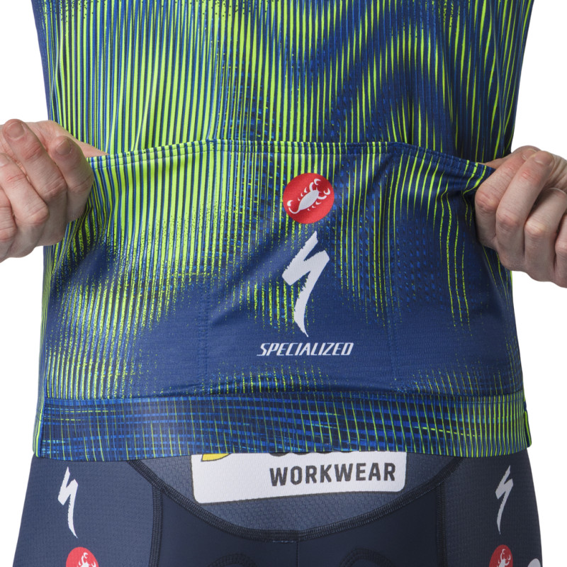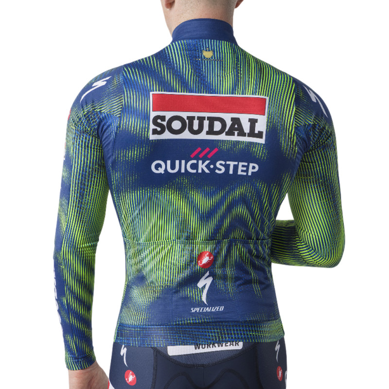Mit dem Trikot für die Übergangszeit in den Farben des Profiteams Soudal Quick Step 2026 fahren Sie stilvoll und bequem.