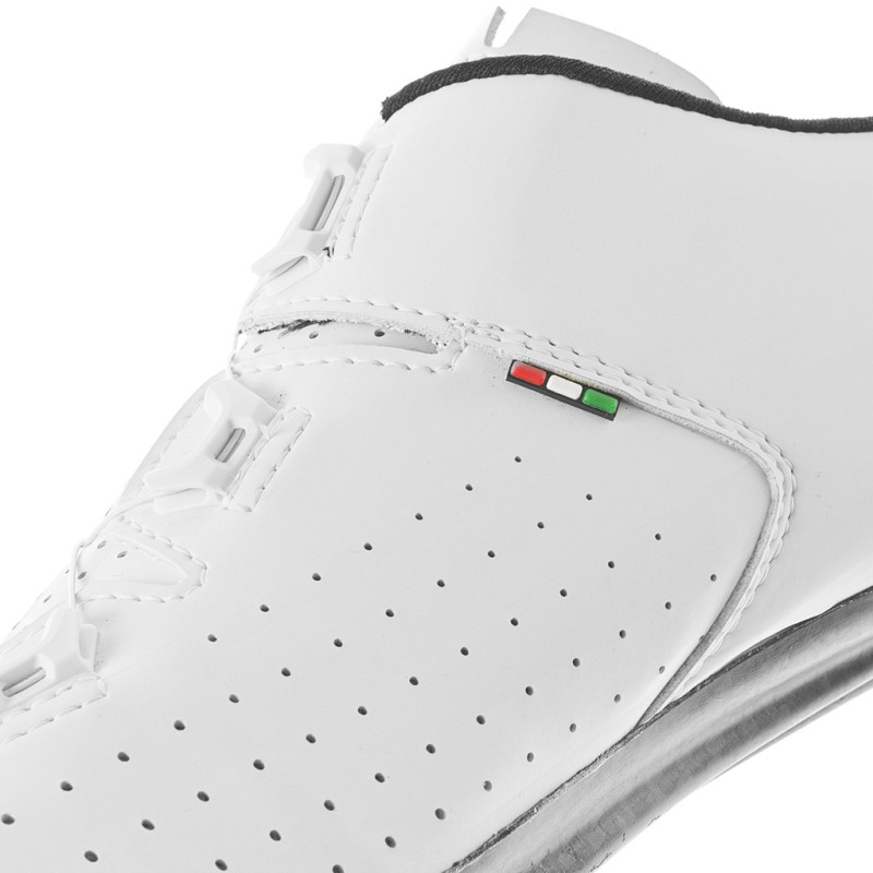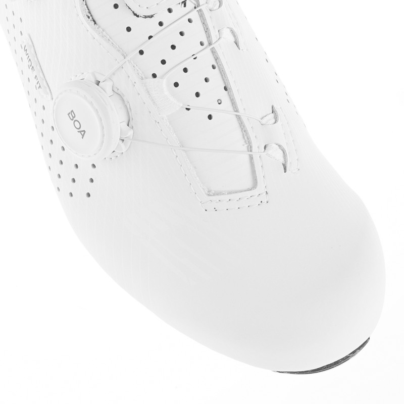 Die Rennradschuhe Gaerne G.Fuga Wide verbinden Leichtigkeit und Leistung, um bei jeder Tour unvergleichlichen Komfort zu bieten. Ausgestattet mit dem Boa L6 Dial Z-Verschlusssystem garantieren sie einen präzisen und gleichmäßigen Halt des Fußes und verteilen den Druck effizient über den gesamten Schuh. Das Tarsal 1.0-System verstärkt diesen Halt durch Stabilisierung des Fußrückens und maximiert so die Effizienz des Pedaltritts. Mit ihrer größeren Weite in der Wide-Version sind diese Schuhe für Radfahrer mit breiten Füßen konzipiert. Die Carbonsohle mit einem Steifigkeitsindex von 8 bietet optimale Kraftübertragung und sorgt gleichzeitig für hervorragende Atmungsaktivität, um Feuchtigkeit und unangenehme Gerüche zu vermeiden. Diese Schuhe sind ideal für Radfahrer, die die perfekte Kombination aus Leistung und Komfort suchen, und ermöglichen es Ihnen, Ihre Grenzen zu erweitern – mit einem Gefühl von Leichtigkeit bei jedem Tritt in die Pedale. Technische Merkmale: - Komfort- und Performance-Rennradschuh