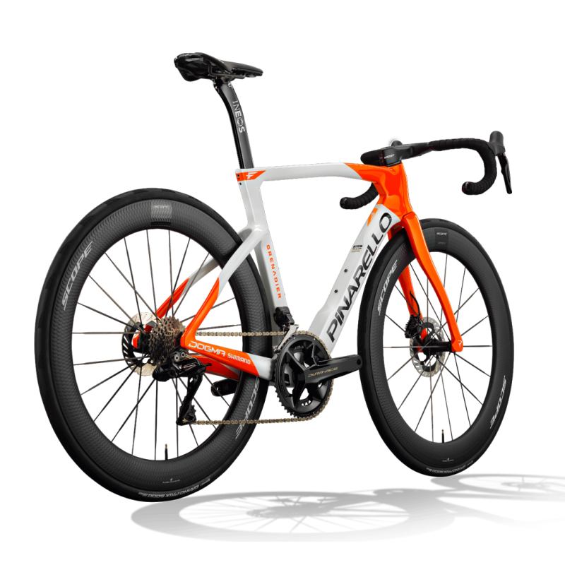 - Rahmen: Pinarello Dogma F Disc – TorayCa M40X-Carbon, TiCR™-Kabelführung, italienisches Tretlagergehäuse