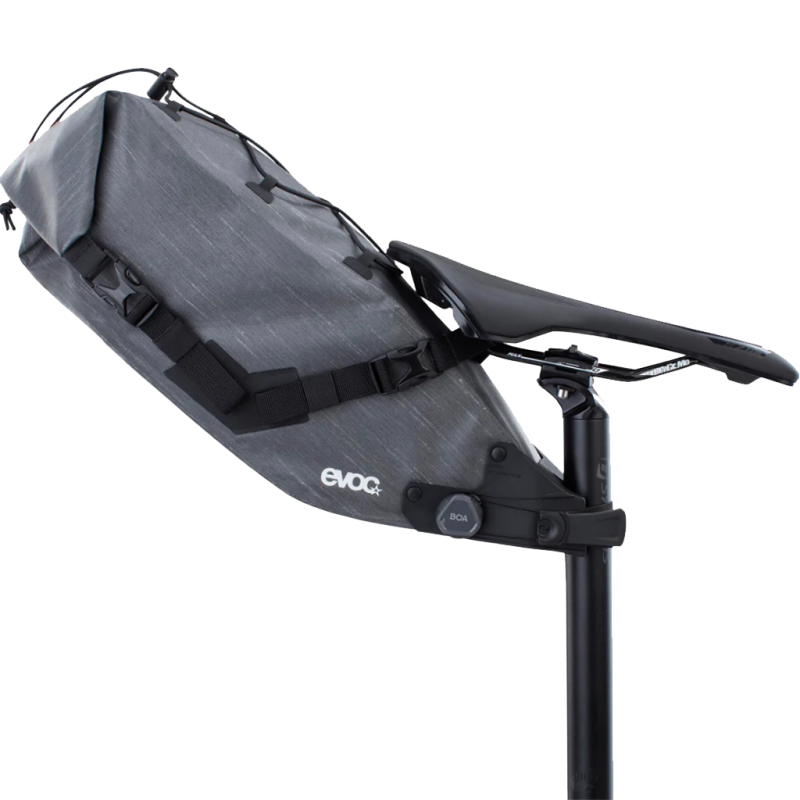 Die Satteltasche Evoc Seat Pack BOA WP 6 ist die perfekte Lösung, um das Nötigste auf Ihren Gravel-, Straßen- oder Mountainbike-Touren mitzunehmen. Kompakt und leicht bietet sie ein anpassbares Volumen von bis zu 6 Litern, ideal für Mikroabenteuer und Tagesausflüge. Ihr BOA Fit System zur Befestigung garantiert eine schnelle Montage und einen sicheren Halt an fast allen Sattelstützen, selbst in unwegsamem Gelände. Dank ihres wasserdichten Materials und der verschweißten Nähte ist diese Satteltasche absolut wasserdicht und schützt Ihre Ausrüstung zuverlässig vor Regen und Schlamm. Die Rollverschlussöffnung mit Kompressionsriemen ermöglicht es, das Volumen anzupassen und leicht auf den Inhalt zuzugreifen. Externe Gummizüge bieten zusätzlichen Platz zum Befestigen von Ausrüstung, während das reflektierende Logo die Sichtbarkeit und Sicherheit erhöht. Technische Daten - Einsatzbereich: Tagesausflüge mit dem Gravelbike, Rennrad oder Mountainbike