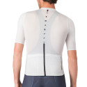 Bei diesem Trikot setzt Castelli dank des Strada-Micromesh-Gewebes vor allem auf Komfort und Atmungsaktivität. Dieses dehnbare, mikroperforierte Gewebe schmiegt sich passgenau an den Körper an und lässt gleichzeitig die Luft frei zirkulieren. Es leitet Wärme und Feuchtigkeit effizient ab und sorgt so für ein anhaltendes Frischegefühl, selbst wenn das Tempo zunimmt. Das Material fühlt sich angenehm auf der Haut an und bietet hervorragenden Halt, sodass man lange fahren kann, ohne sich jemals eingeengt zu fühlen. Technische Merkmale: - Castelli Drittone Logo Kurzarm-Radtrikot