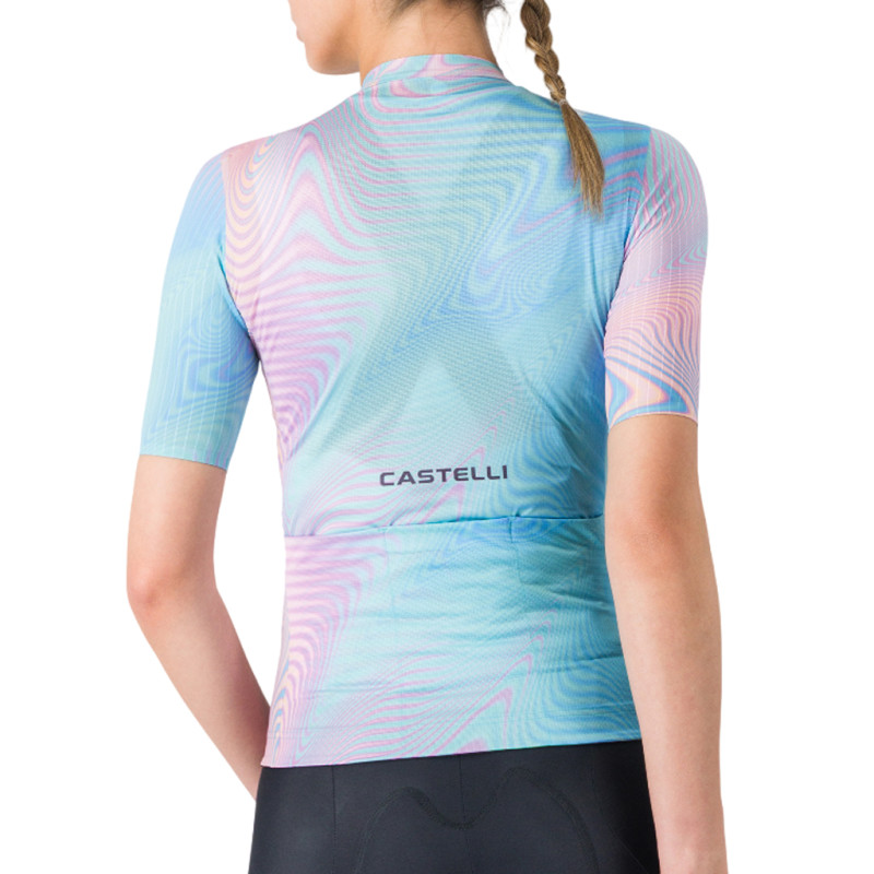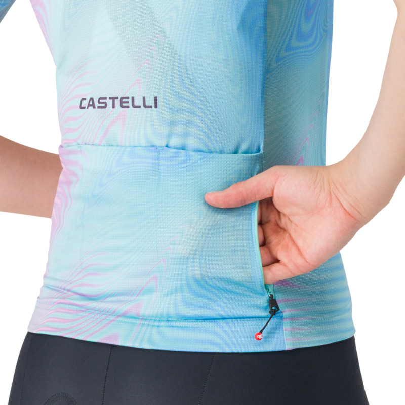 Das Damen-Radtrikot Castelli Cosmic Vortex verkörpert die neue Generation des Castelli-Designs mit einem markanten Stil und einer echten Leistungsorientierung. Es wurde für temporeiche Touren entwickelt und verbindet eine dynamische Passform mit optimalem Komfort. Das dehnbare Strada-Micromesh-Material sorgt für hervorragende Atmungsaktivität und effizientes Feuchtigkeitsmanagement, selbst bei steigender Intensität. Die geradlinig geschnittenen Ärmel sorgen für ein Gefühl wie eine zweite Haut, während der silikonbeschichtete Gummizug an der Taille das Trikot perfekt an Ort und Stelle hält. Funktional und durchdacht verfügt es über drei Rückentaschen, ergänzt durch eine sichere Reißverschlusstasche, sowie einen YKK-Vislon-Reißverschluss für eine einfache und effiziente Handhabung bei jeder Tour. Dieses Trikot mit neuem Design wird zweifellos zum Maßstab für Frauen werden. Technische Daten: - Castelli Cosmic Vortex Damen-Radtrikot mit kurzen Ärmeln